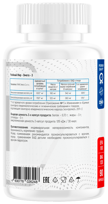 • EPA и DHA - оптимальная дозировка для поддержки сердечно-сосудистой системы и когнитивных функций.